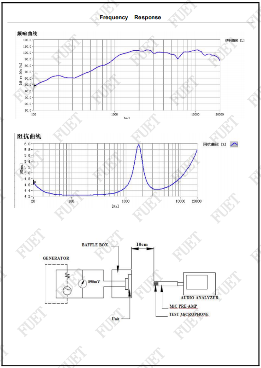 | 阻抗 | 4.0Ω±15% | At 3100Hz 1.0Vrms |